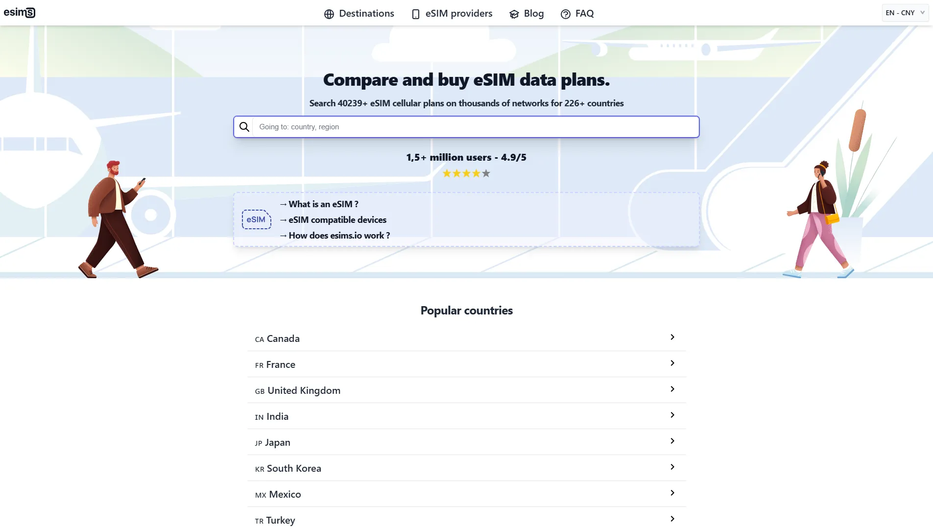 esims.io 是一个致力于为国际旅行者提供预付费 eSIM 数据套餐的平台,旨在为国际旅行者提供更便宜、更方便的移动连接解决方案。通过比较和购买来自不同供应商的数字 SIM 卡选项,帮助他们避免昂贵的漫游费用。该网站于 2019 年推出,现已发展成为服务全球超过 150 万用户的平台,并根据用户反馈获得了平均 4.9 分(满分 5 分)的评价。