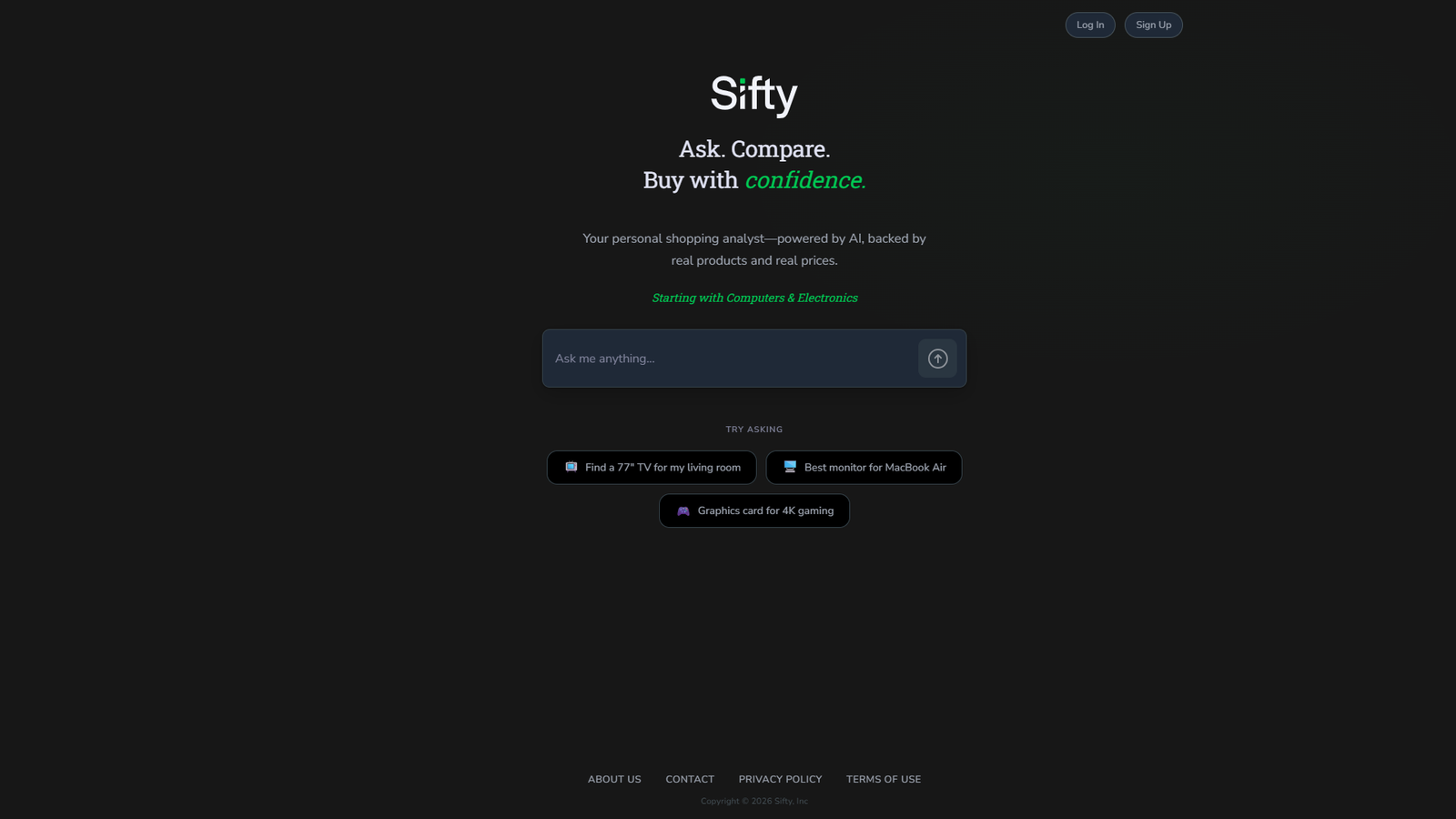 Sifty 是你的私人购物分析师,通过人工智能 + 真实商品 + 实时价格数据,帮助你在电脑、数码、电子产品领域做出更自信、更理性的购买决策。