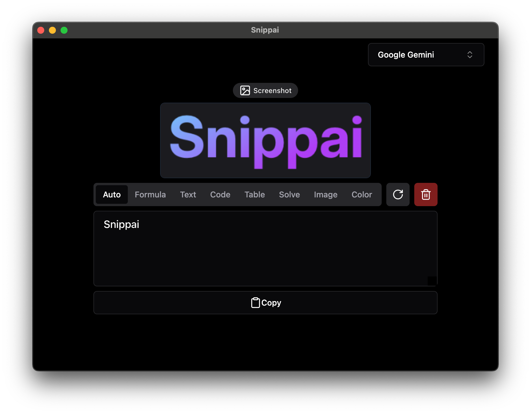 与其他传统截图工具(如 Windows 自带的 Snipping Tool 或 Snipaste)不同,Snippai 不止停留在图像保存层面。它利用 OCR(光学字符识别)和机器学习模型,自动检测截图中的元素,并提供智能输出。这使得它特别适合需要处理复杂内容的场景,比如学术研究、代码调试或数据提取。